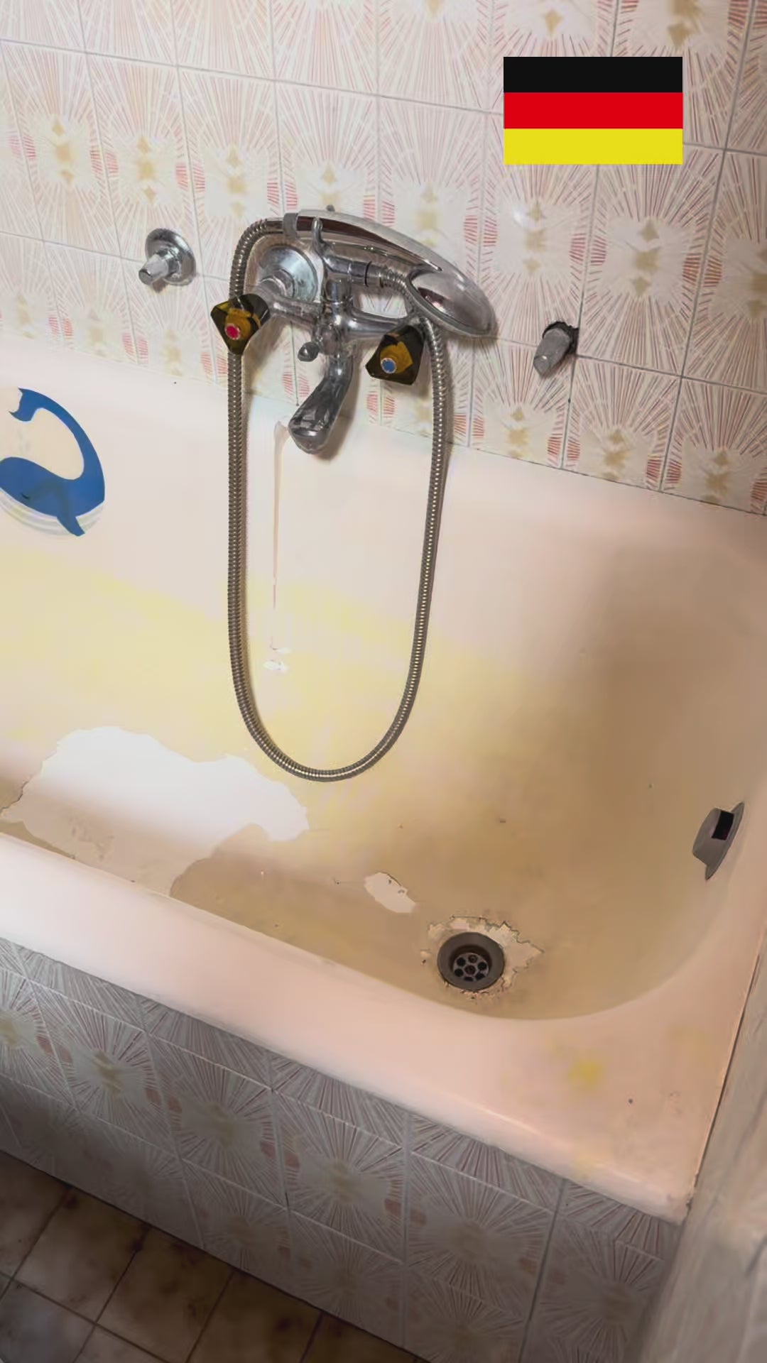Hinweis: Wenn Sie das Abflussrohr der Badewanne nicht entfernen können, kann sich die Arbeitszeit auf 5–6 Stunden verlängern. Für eine einfachere Anwendung unter solchen Bedingungen empfehlen wir EKOPEL ROLL-ON TUB&TILE Coating.